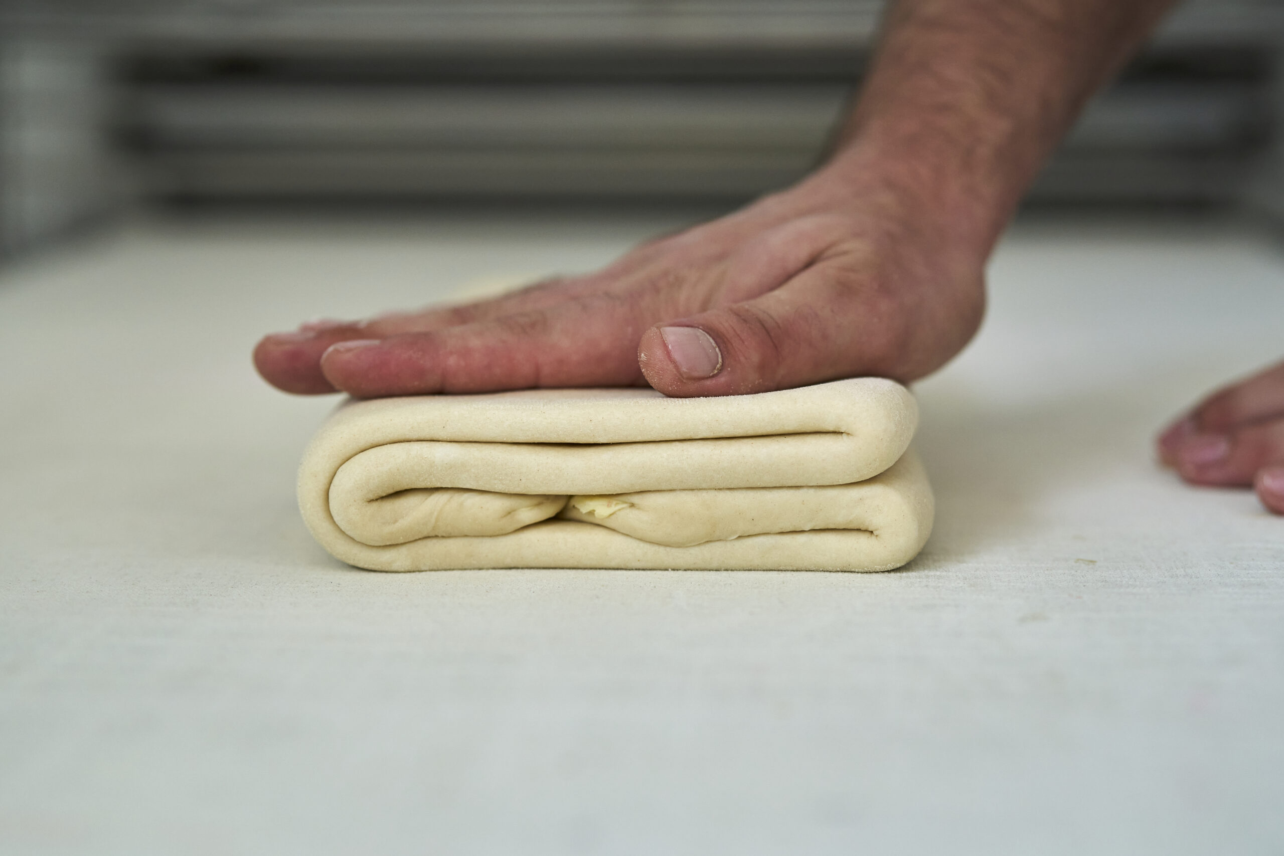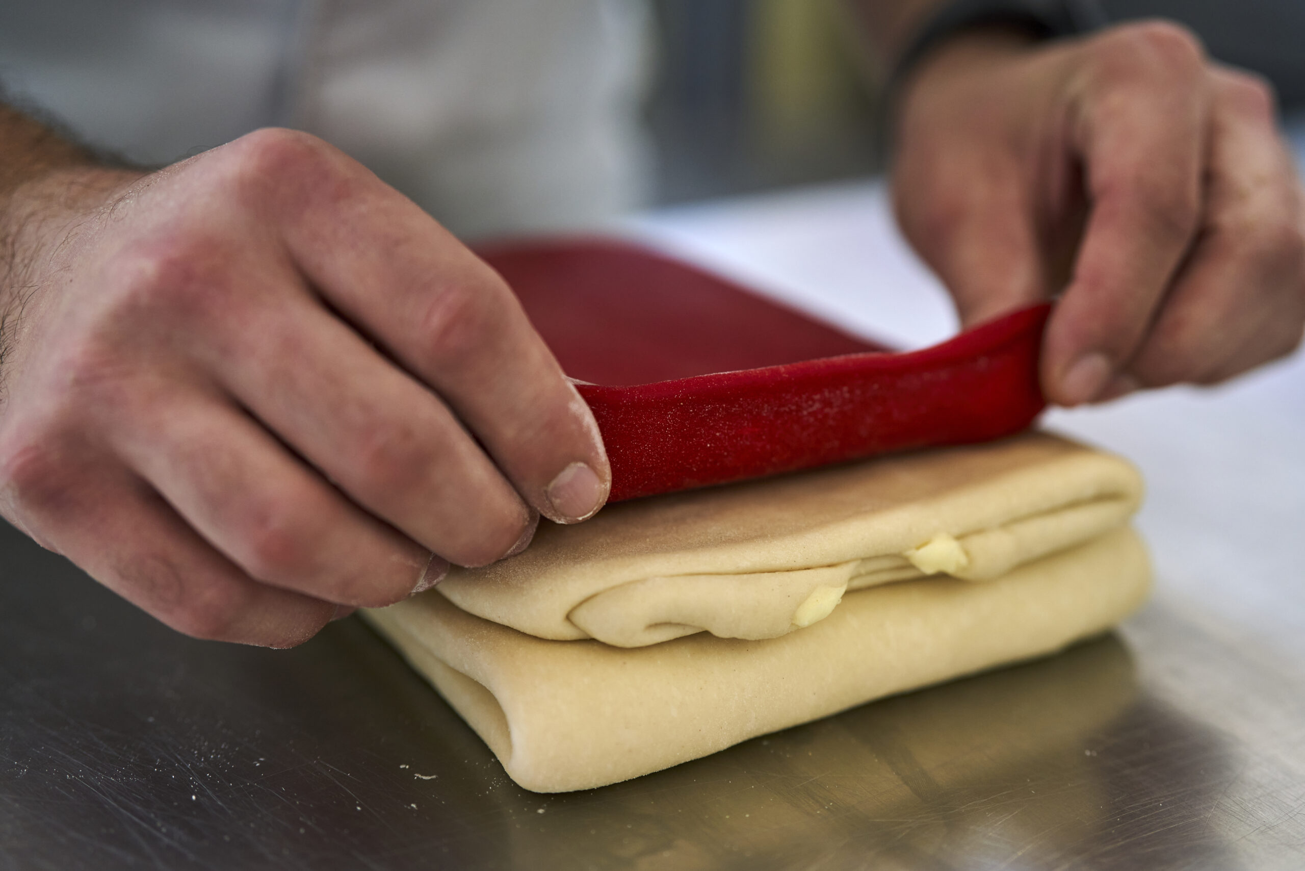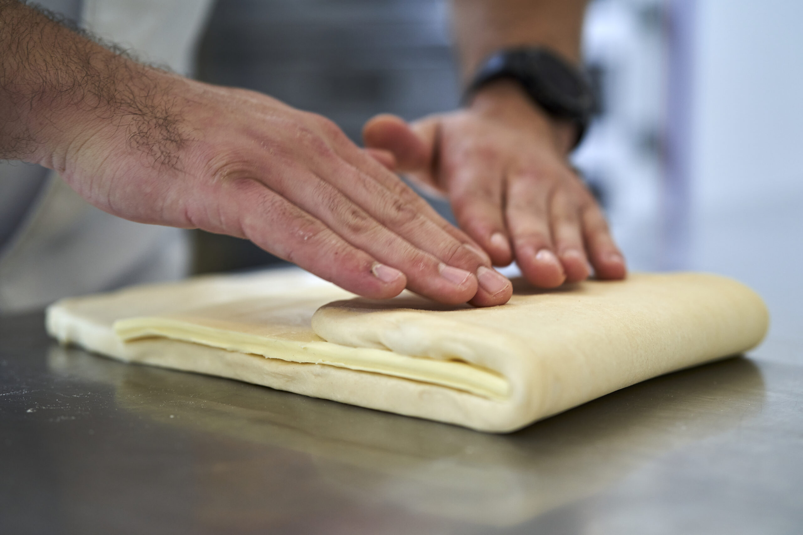 L’endemà, tancar la mantega dins, donar un plec doble i un plec simple i guardar 30 minuts en el congelador.