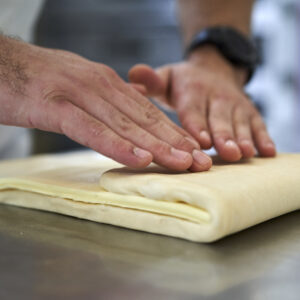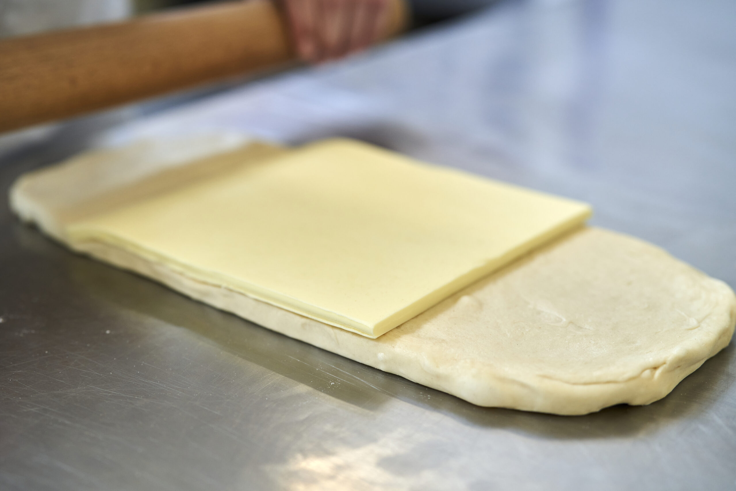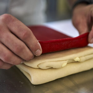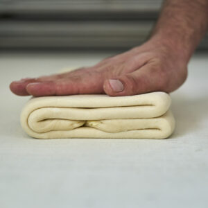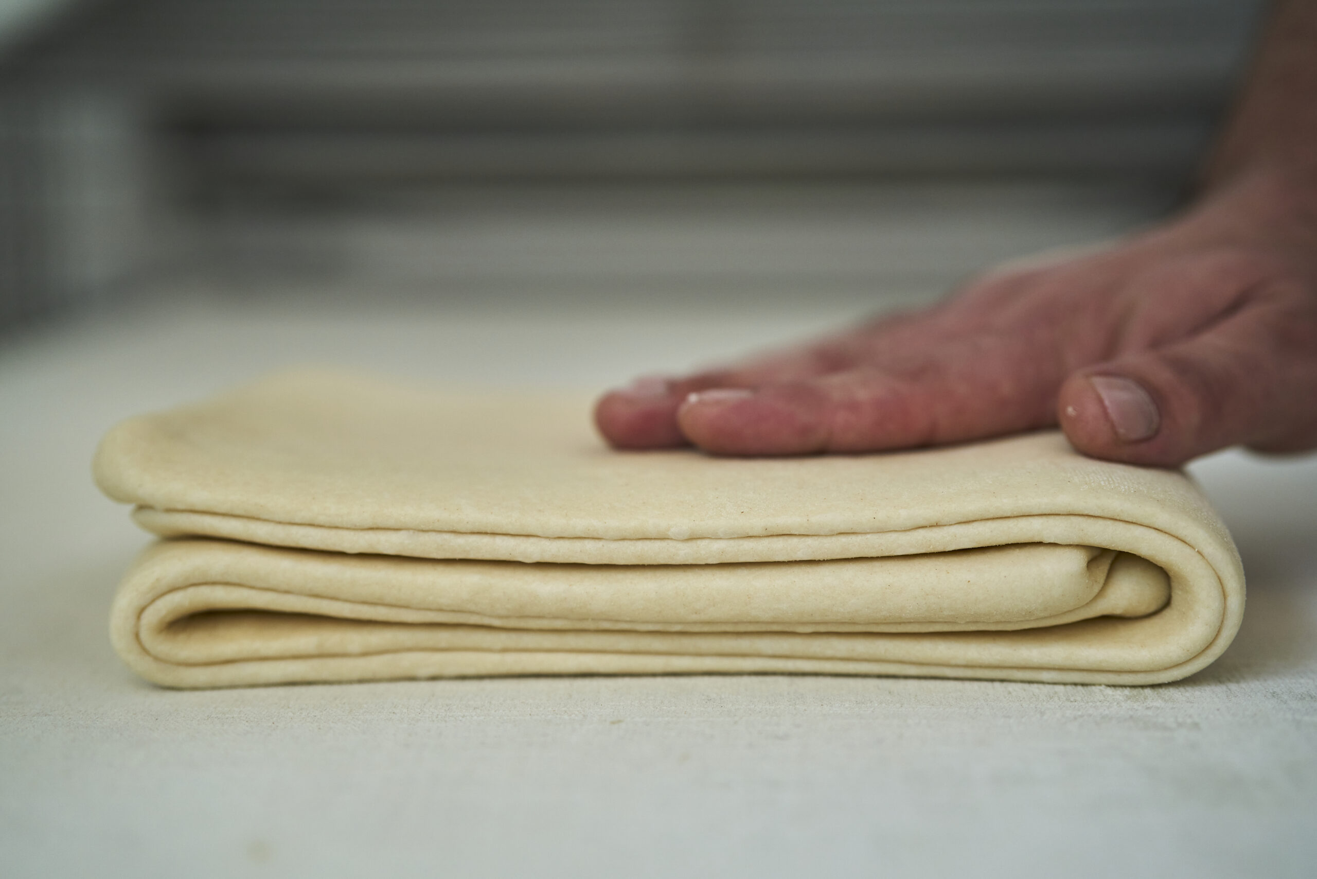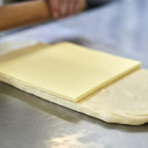 L’endemà, tancar la mantega dins, donar un plec doble i un plec simple i guardar 30 minuts en el congelador.
