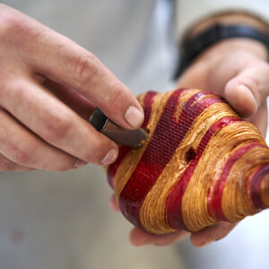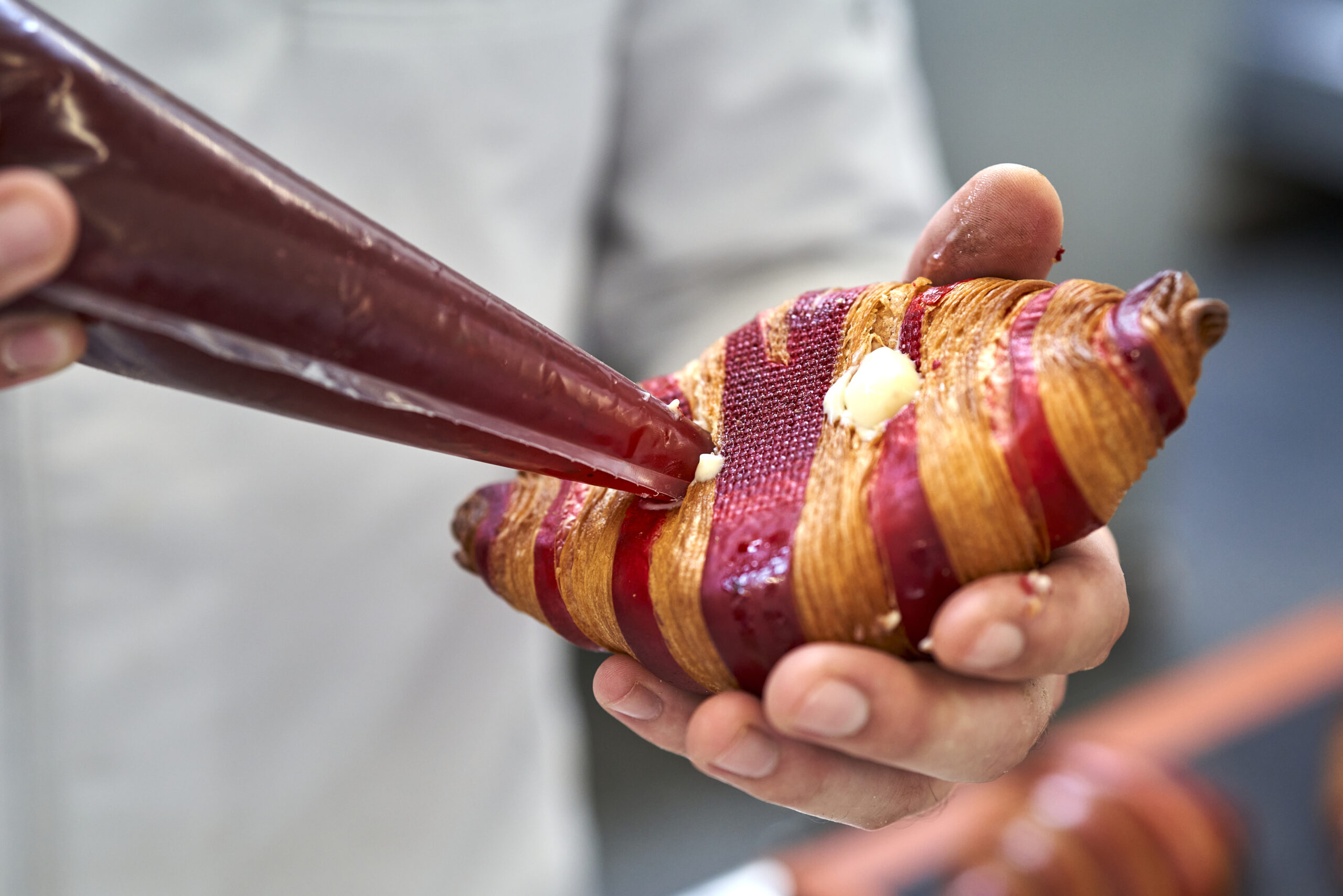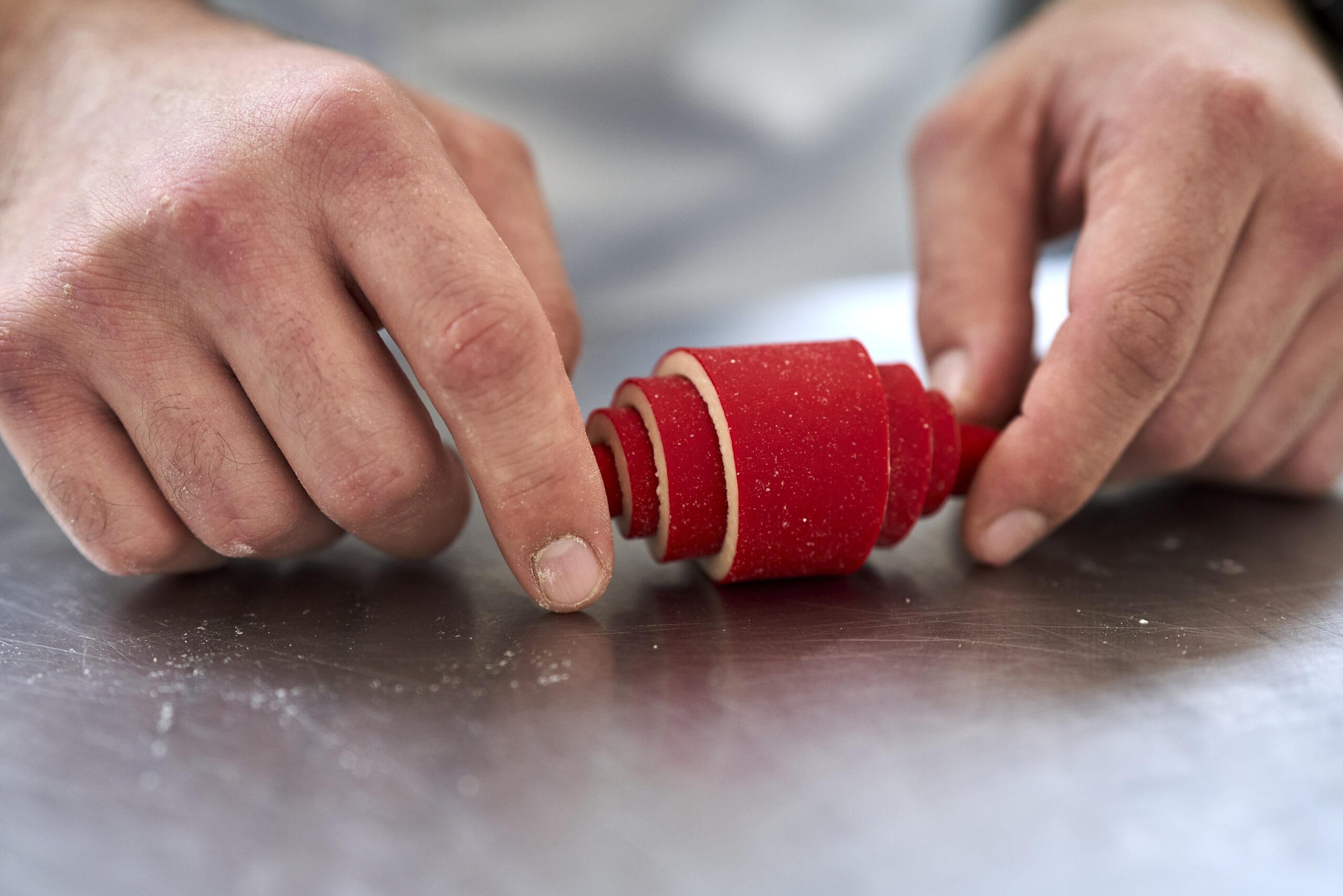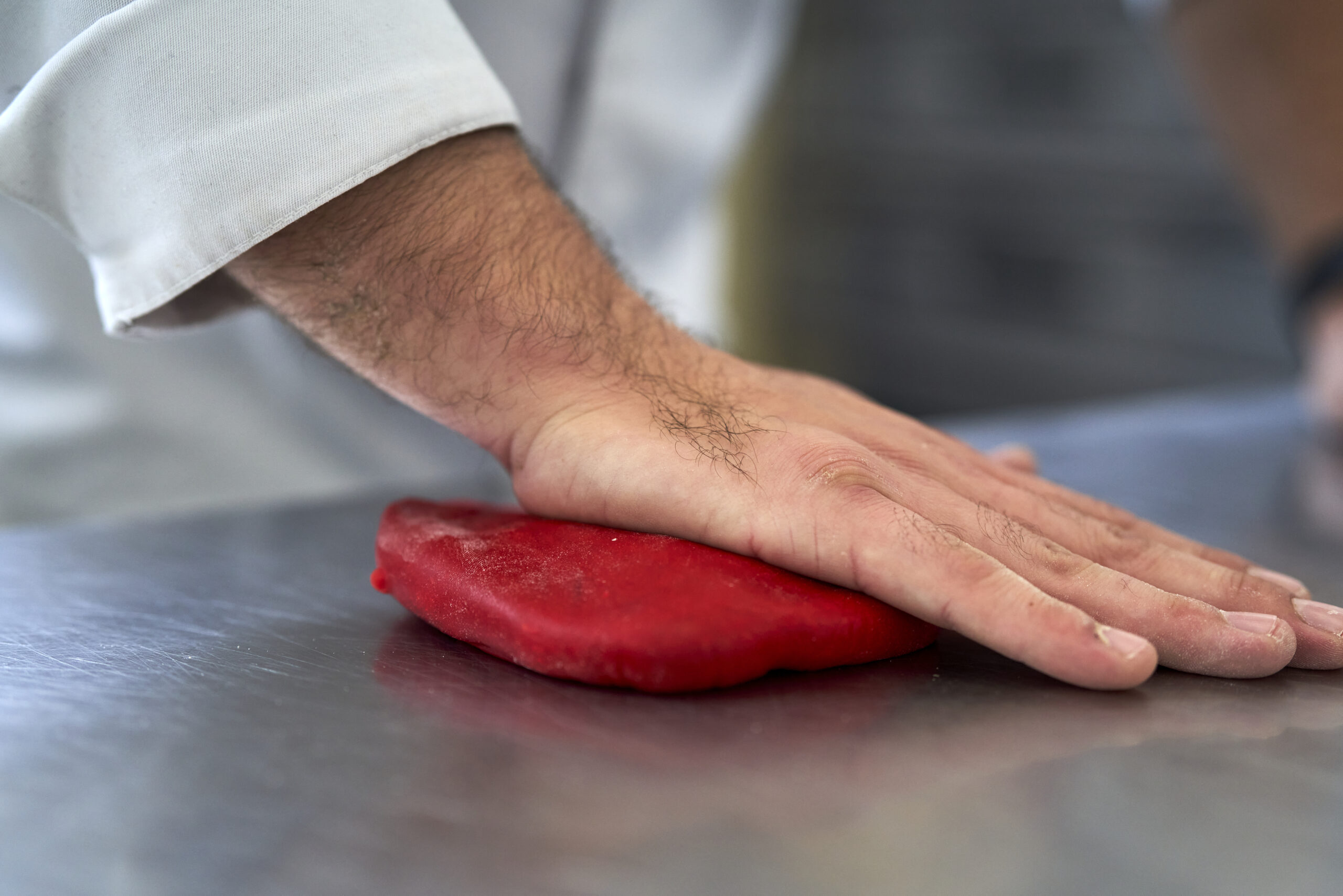 Amb aquesta recepta bicolor vermella, farcida de vainilla i gerds, traslladareu als clients directament a les festes.