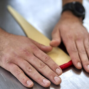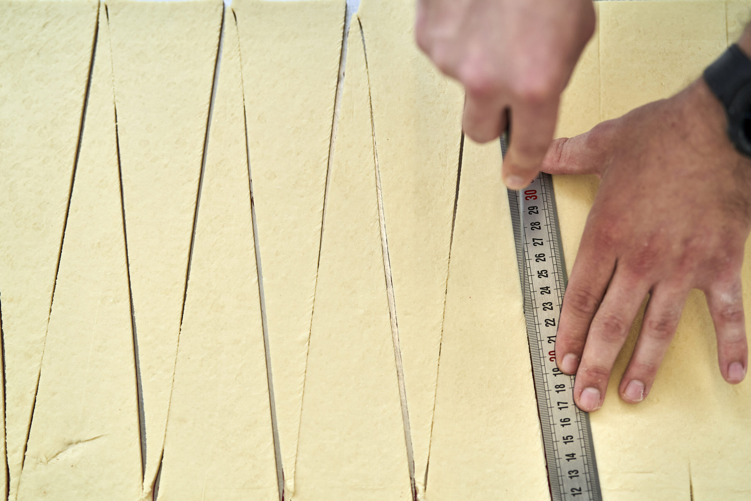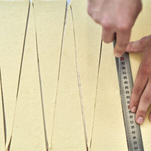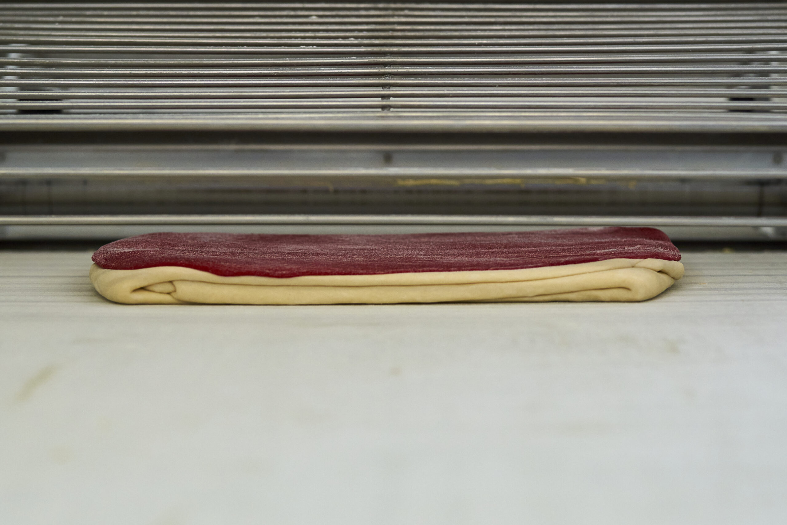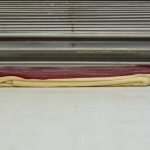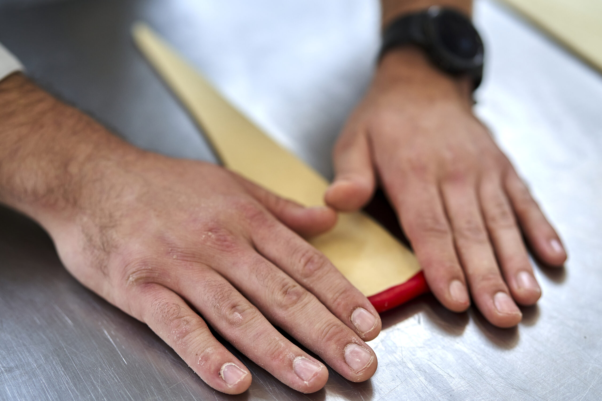 Laminar a 35 cm d’ample, girar el bastó i laminar fins a 3,5 cm.