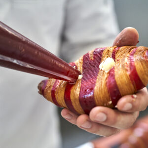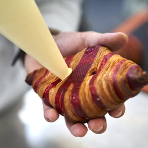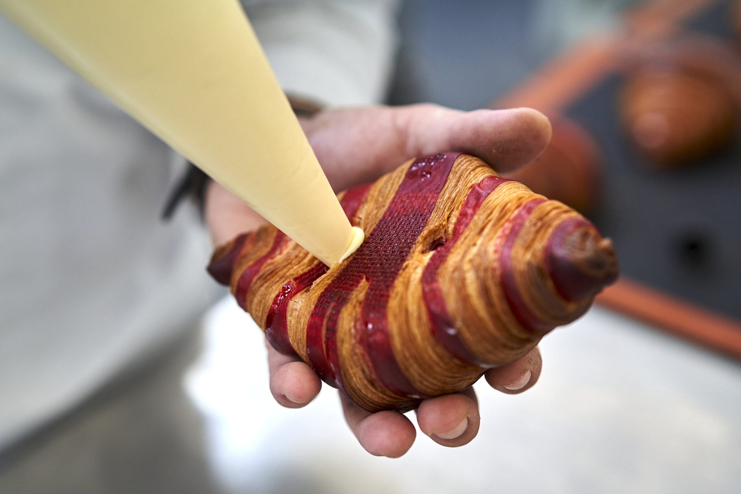 Farcir amb crema de vainilla de Madagascar i mermerlada de gerds.